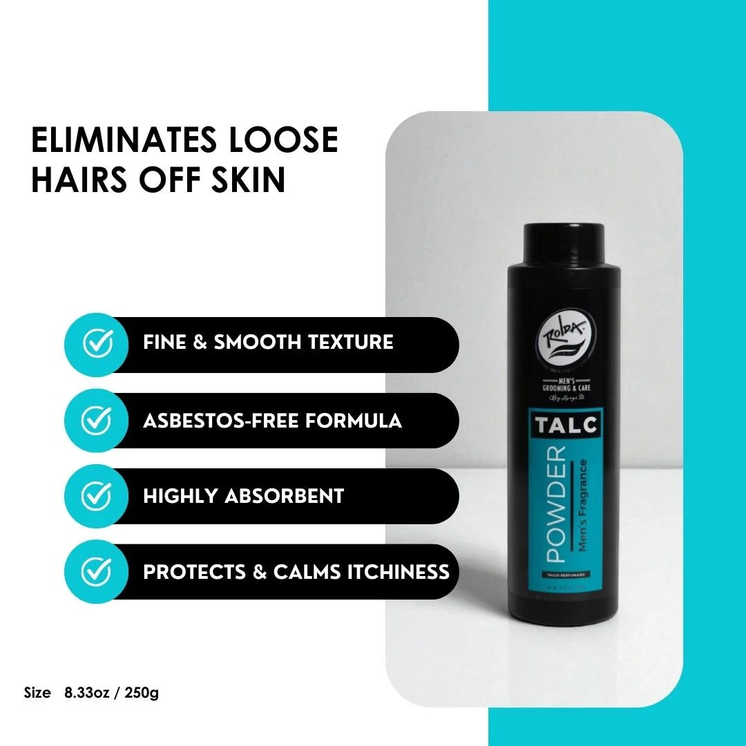 Our Rolda Men's Barber Talc Powder is the perfect after-shave solution for men, designed with a fine and smooth texture to protect and soothe skin. This talc powder is specifically formulated for professional use, making it ideal for barbers and grooming professionals. Its formula helps eliminate loose hairs off the skin and leaves a sophisticated, masculine fragrance behind. The highly absorbent powder provides a fresh, clean feeling after every shave, helping to calm itchy skin and prevent irritation.